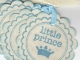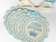 This listing is for Baby Shower Tags / Little Prince Tags / Baby Boy Fairytale Tags / Gift Tags / Nail Polish Favor Tags / Labels / Blue - Set Of 20 Vintage Style. These tags are created on 65# Astroparche Card Stock, hand stamped with and edged with little boy blue ink. Each tag measures 2" in diameter and is pre-strung with light blue satin ribbon. Each tag is blank on the back for a short message or signature.