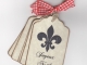 Vintage Inspired Christmas Gift Tags French Fleur De Lis Joyeux Noël!! This listing is for 6 "Joyeux Noël" French Fleur De Lis Gift Tags! The words Joyeux Noël are French for Merry Christmas! Each tag is created on quality 65# Parchment like Astroparche card stock and measures approximately 2-1/8"x3-1/4". The Fleur De Lis image is hand stamped and the words Joyeux Noël are printed with black ink. Each tag is hand edged with Sepia ink to give it a vintage, antique look. All are pre-strung with natural twine and are blank on the back for a signature or short personal message.