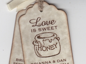 50 Honey Jar Wedding Favor Tags / Gift Tags / Place Cards / Escort Tags / Thank You Tags / Shower Tags / Love Is Sweet Tags - Vintage