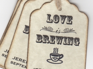 Love Is Brewing Wedding Favor Tags / Personalized / Place Cards / Coffee Tea Or Beer Tags / Labels / Set Of 50 - Vintage Style