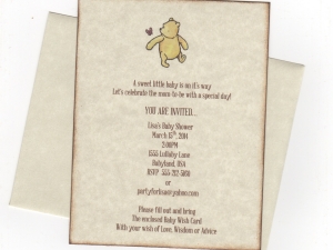 10 Winnie The Pooh Invitations, Baby Shower, Christening, Birthday, Gender Neutral, Vertical Style - Vintage Style