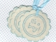 This listing is for 20 Baby Shower Favor Tags / It's A Boy Baby / Baby Tags / Gift Tags / Place Cards / New Baby Labels / Blue - Vintage Style. These tags are created on 65# Astroparche Card Stock, hand stamped with and edged with nice blue ink. Each tag measures 2" in diameter and is pre-strung with light blue satin ribbon. Each tag is blank on the back for a short message or signature.
